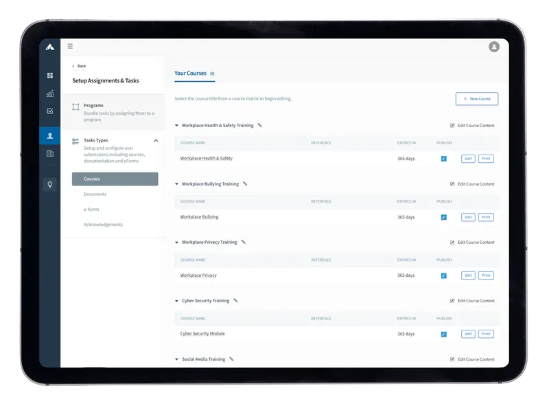 The Altora Online Induction platform includes full access to our comprehensive library of courses, modules, forms and templates, developed by WHS experts.