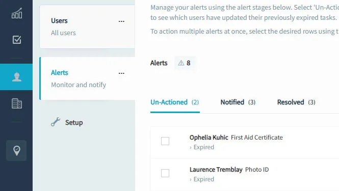 Automatically notify users and administrators of upcoming expiries for licences, certifications, inductions, and other time-sensitive requirements.