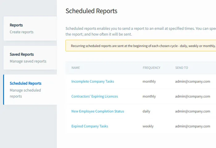 Set up automated delivery of compliance, training, and user activity reports at regular intervals to key stakeholders.