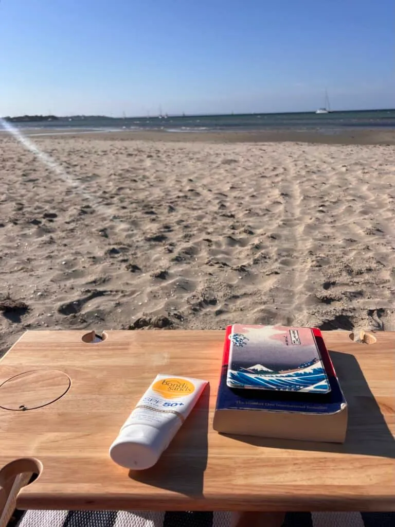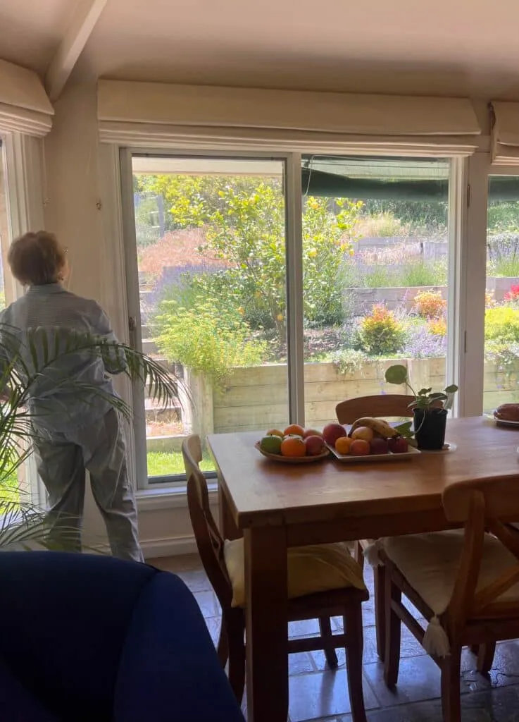 She also had lunch with her elderly neighbour in her very picturesque garden, followed by some downtime at the beach with a book.