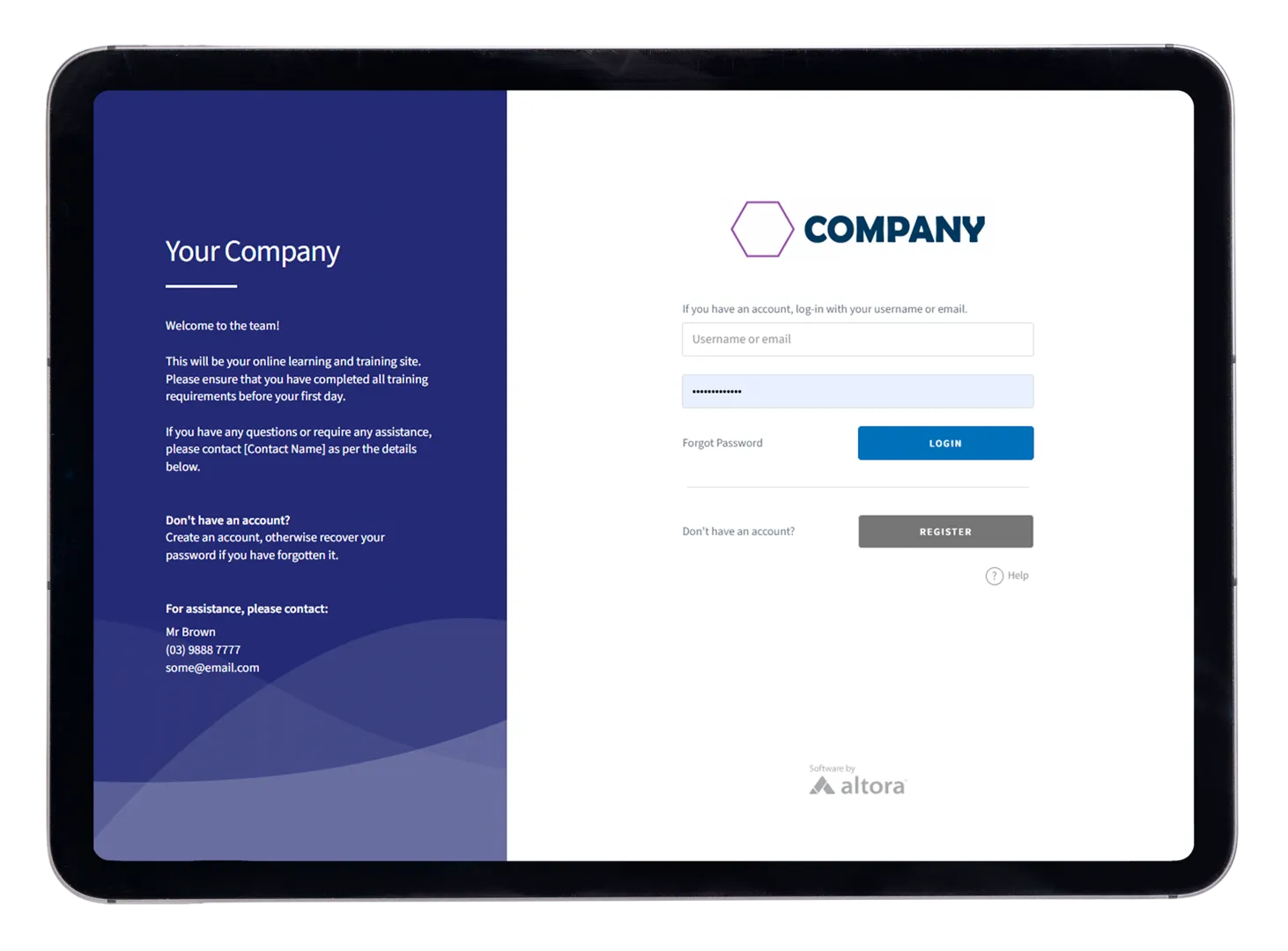 Altora is configured per organisation, including your company’s: